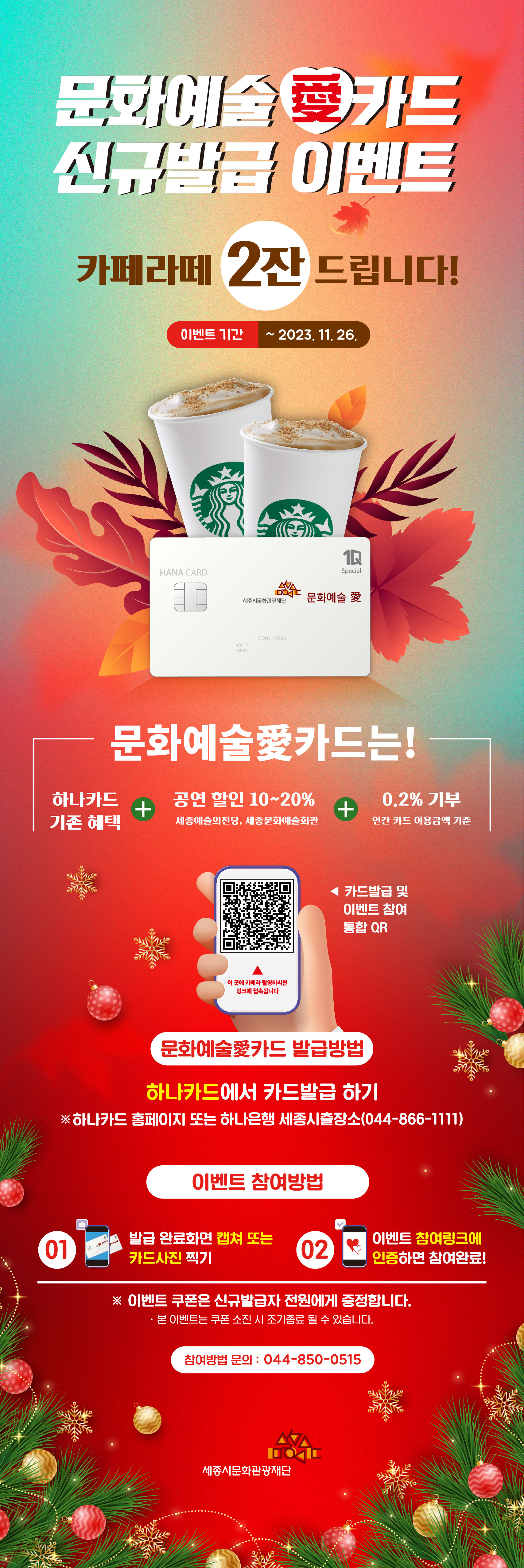 세종시문화관광재단 메세나카드 '문화예술愛카드' 신규발급 연말 이벤트(~11.26)