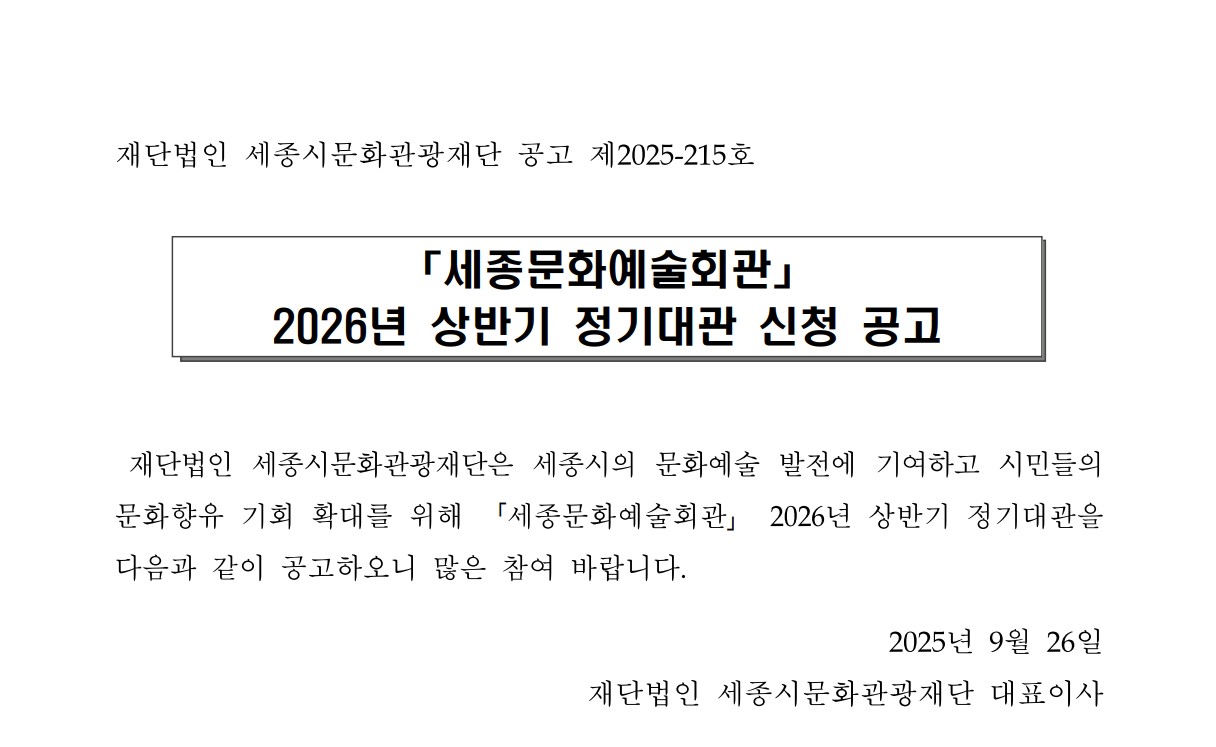 「세종문화예술회관」 2026년 상반기 정기대관 신청 공고