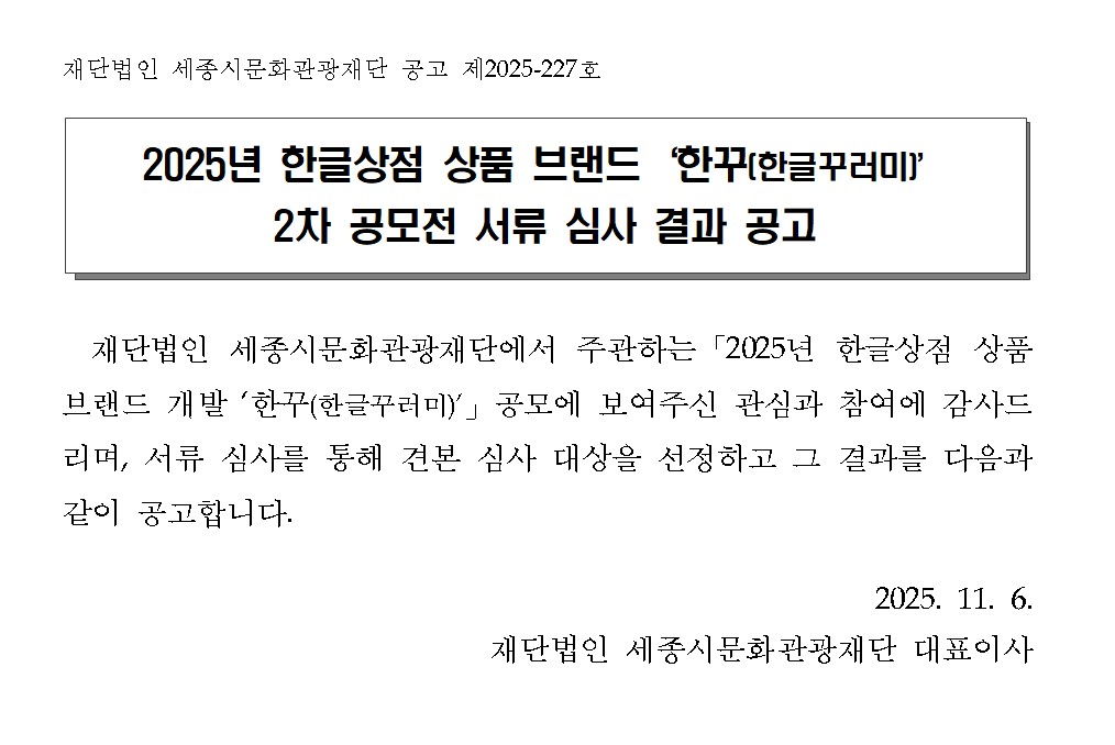 2025 한글상점 브랜드 개발 한꾸 2차 공모전 서류 심사결과 공고.pdf