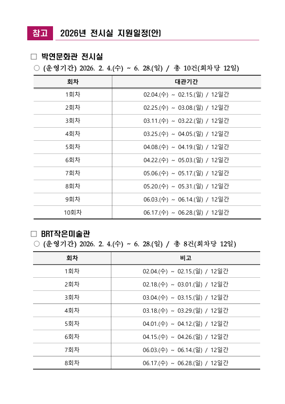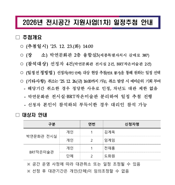 2026년 전시공간 지원사업(1차) 일정추첨 안내