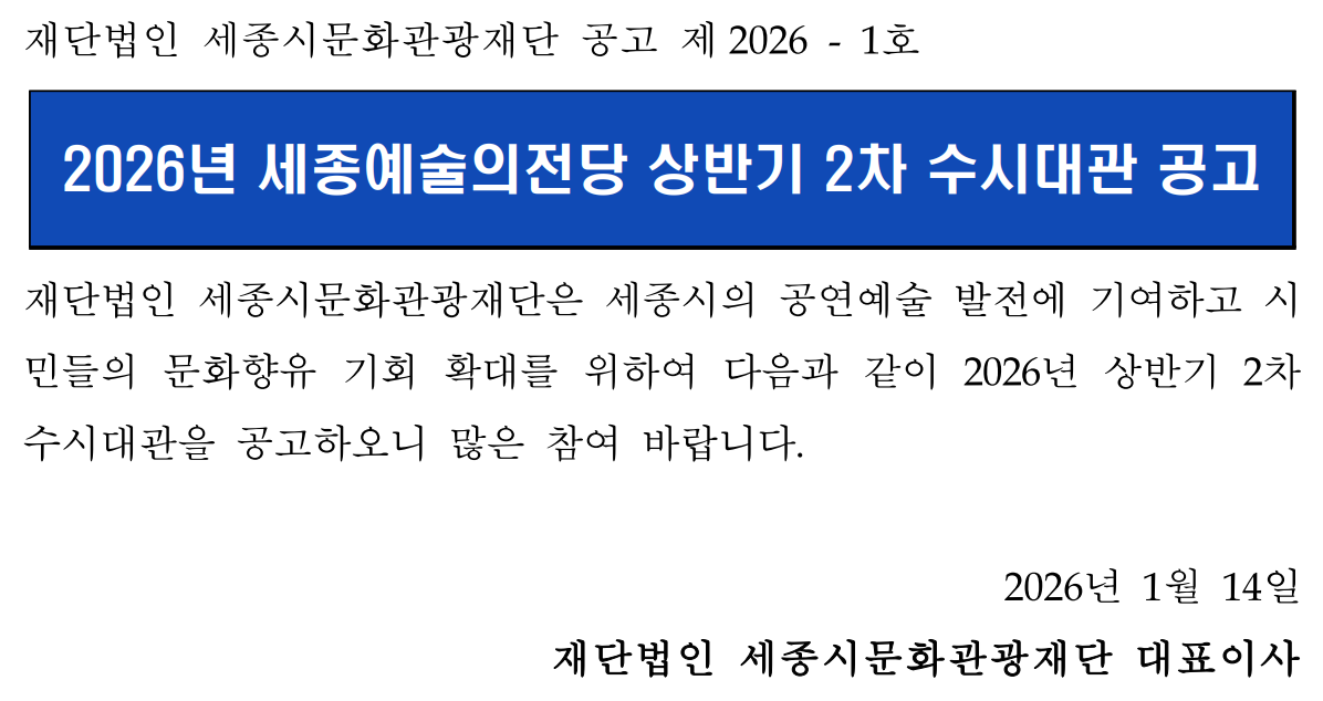 붙임1. 2026년 세종예술의전당 상반기 2차 수시대관 공고.pdf