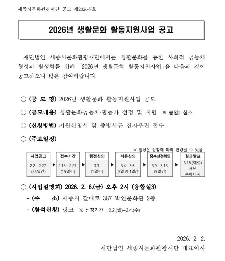 2026년 생활문화 활동지원사업 공모 안내