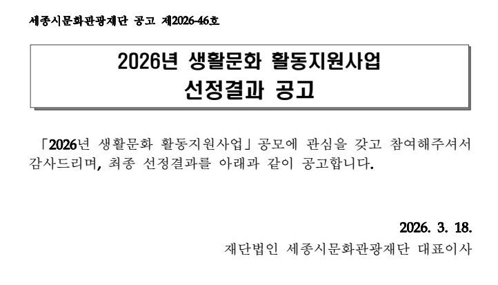 2026년 생활문화 활동지원사업 선정결과 공고